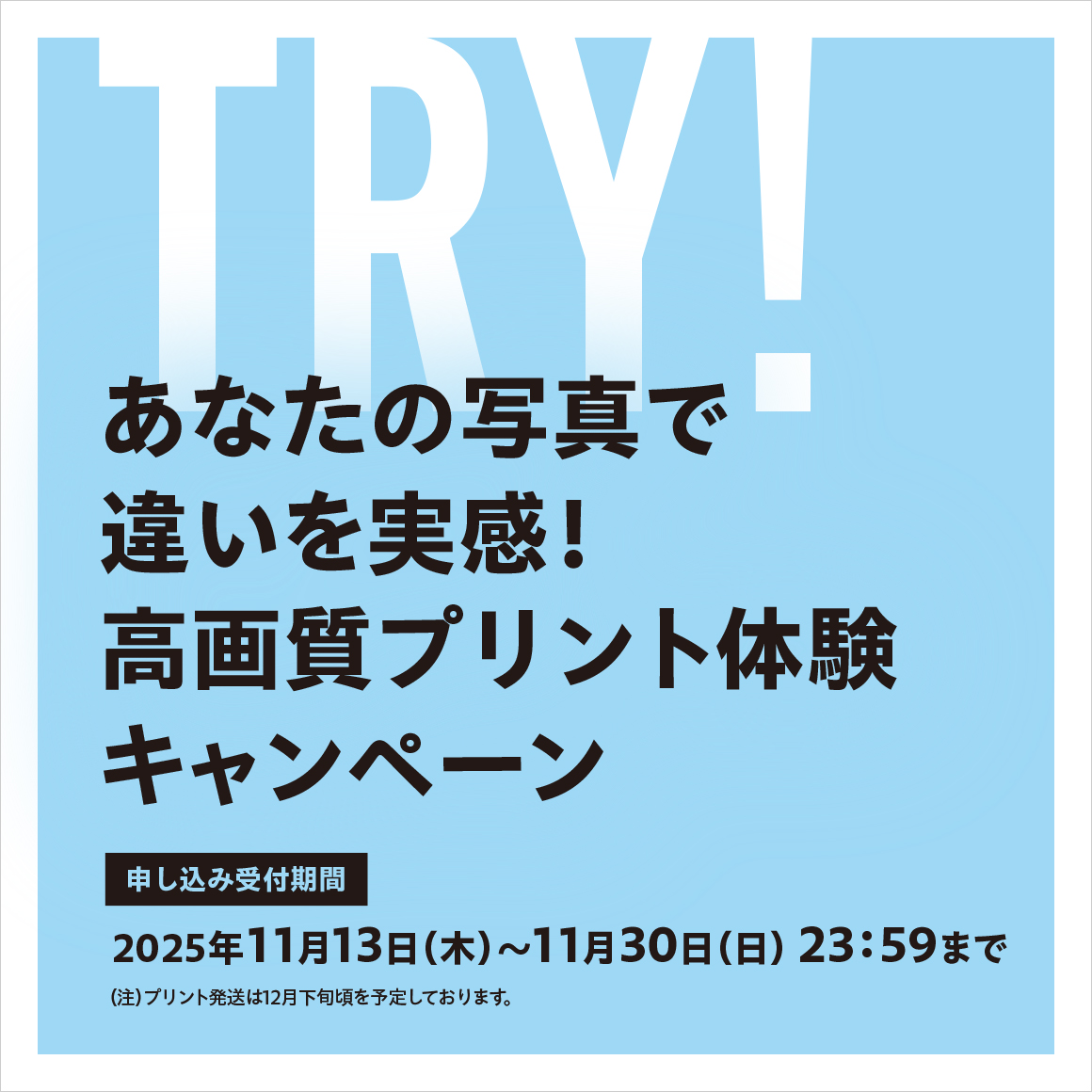 12月下旬頃に、ご登録のご住所宛にプリントをお送りします。「レターパックプラス」でのお届けを予定しています